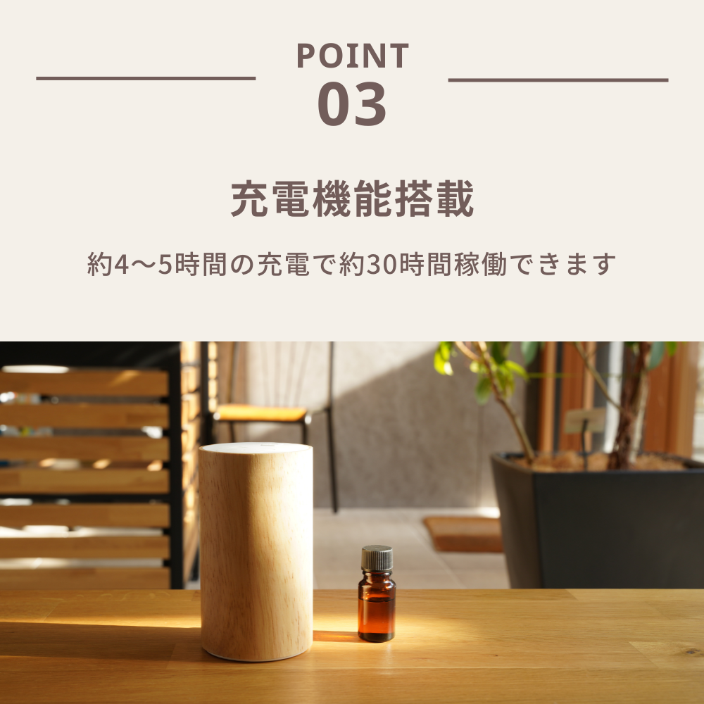 エッセンシャルオイル(精油)の微粒子を空気で効率よく拡散させ、精油本来の香りを楽しめるディフューザー、「アロモア」シリーズの充電式タイプです。