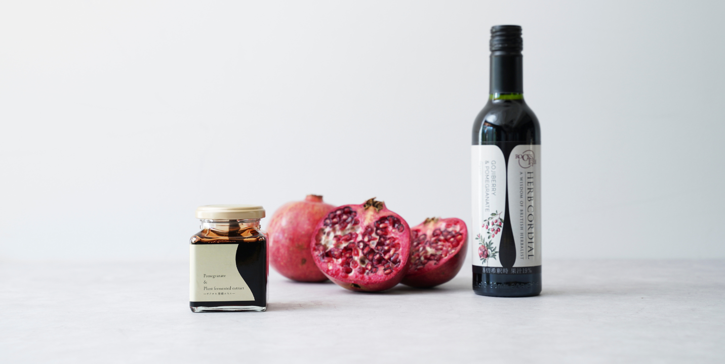 Pomegranate & fermented extract, herb cordial, organic goji berry & pomegranate for delicious and healthy seasonal changes.