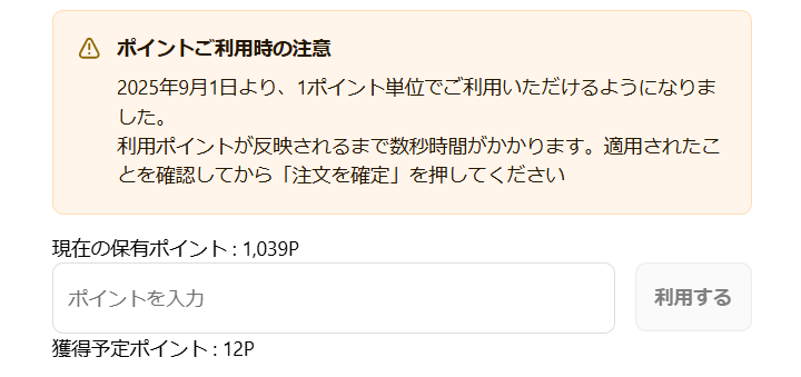 For online stores, enter the points you wish to use on the checkout screen and be sure to click the "Use" button. Your purchase details will be recalculated.
