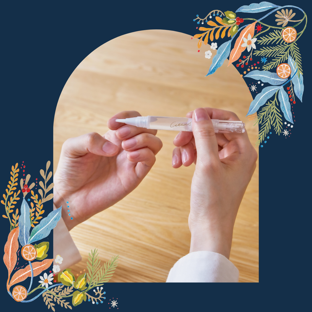 さわやかなシトラスの香りに包まれる冬のハンドケア。 ハンドクリームとネイルオイルのW使いで、 かじかむ季節もなめらかな手肌へ。
