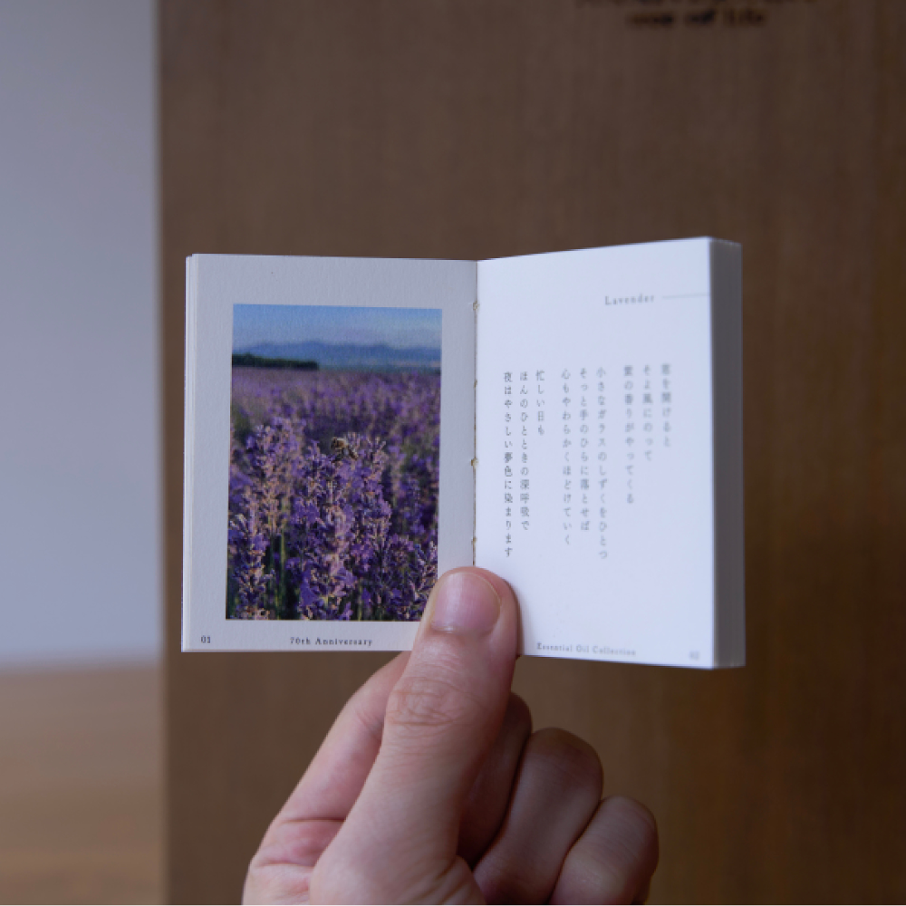 さらに、物語が宿る70の香りがあなたの暮らしを彩る、アロマガイドブックも同封されており、精油を学びたい方にも、香りを深く楽しみたい方にもおすすめです。