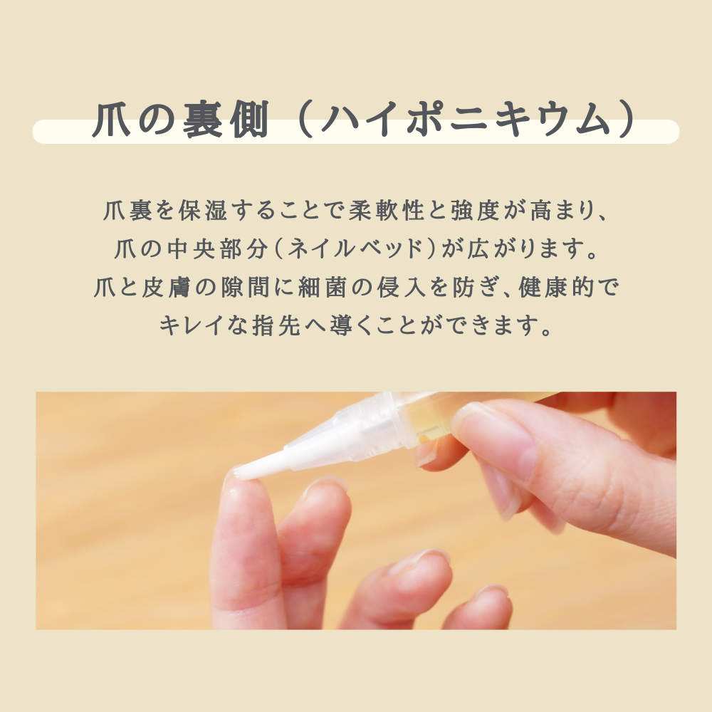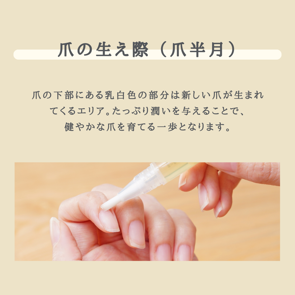 爪や指先周りの乾燥を防ぎ、健やかな指先を保つ、ネイル用美容オイル。