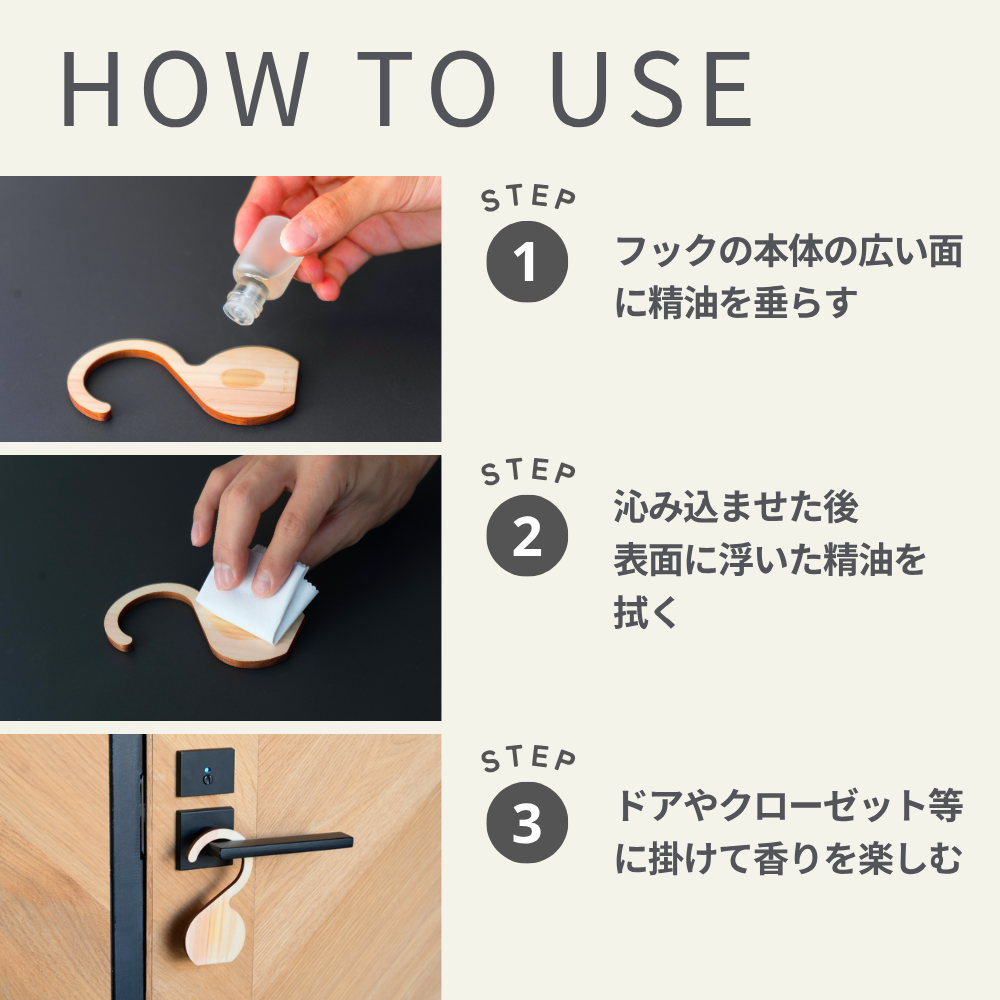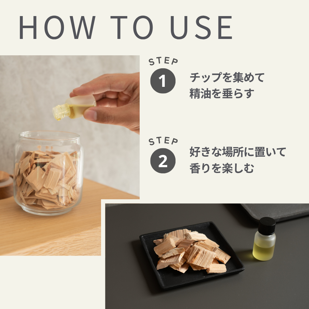 香りを楽しむディフューザーに天然のヒノキを使用。